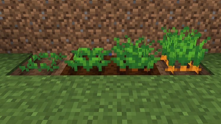 당근은 총 4개의 성장 단계가 있습니다. 뼛가루를 들고 당근에 우클릭해서 성장을 가속할 수 있습니다. 당근이 다 자랐다면 당근을 부숴서 수확할 수 있습니다. 당근을 수확하면 2~5개의 당근을 얻을 수 있습니다. 행운 마법이 부여되어 있는 도구로 수확하면 더 많이 얻을 수 있습니다. 수확해서 얻은 당근을 다시 심어주면 됩니다.