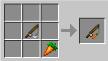 당근과 낚싯대로 당근 낚싯대를 만들 수 있습니다. 돼지에게 안장을 씌우고 올라 타서 당근 낚싯대를 들면 바라보고 있는 방향으로 돼지가 이동합니다.