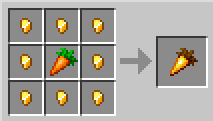 황금 조각 8개와 당근으로 황금 당근을 만들 수 있습니다. 황금 당근은 6의 허기와 14.4의 포만감을 회복시켜 주는데, 황금 당근의 포만감 수치는 모든 음식 중 가장 높습니다. 따라서 금 농장이 있다면 황금 당근을 주식으로 삼는 것도 괜찮습니다.