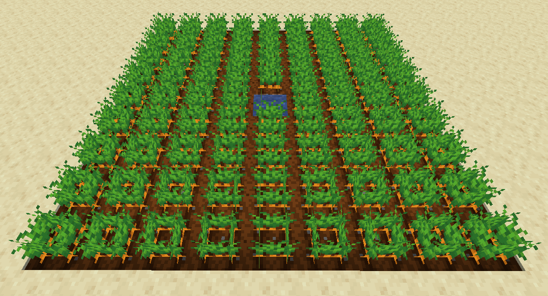 당근을 재배하려면 경작지가 필요합니다. 괭이를 들고 흙이나 잔디 블록을 우클릭해서 땅을 경작할 수 있습니다. 경작지는 몹이 밟거나 플레이어가 점프하면 흙으로 돌아갑니다. 따라서 농장을 울타리로 막아주는 것이 좋습니다.